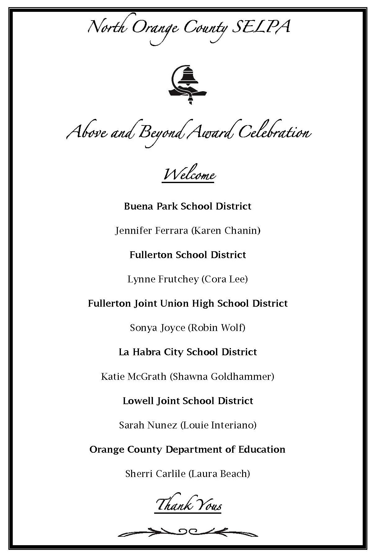 2018-2019 Above and Beyond Award Recipients (from Left to Right): Sonya Joyce (FJUHSD), Katie McGrath (LHCSD), Jennifer Ferrara (BPSD), Sherri Carlile (OCDE), Lynne Frutchey (FSD), Sarah Nunez (LJSD)